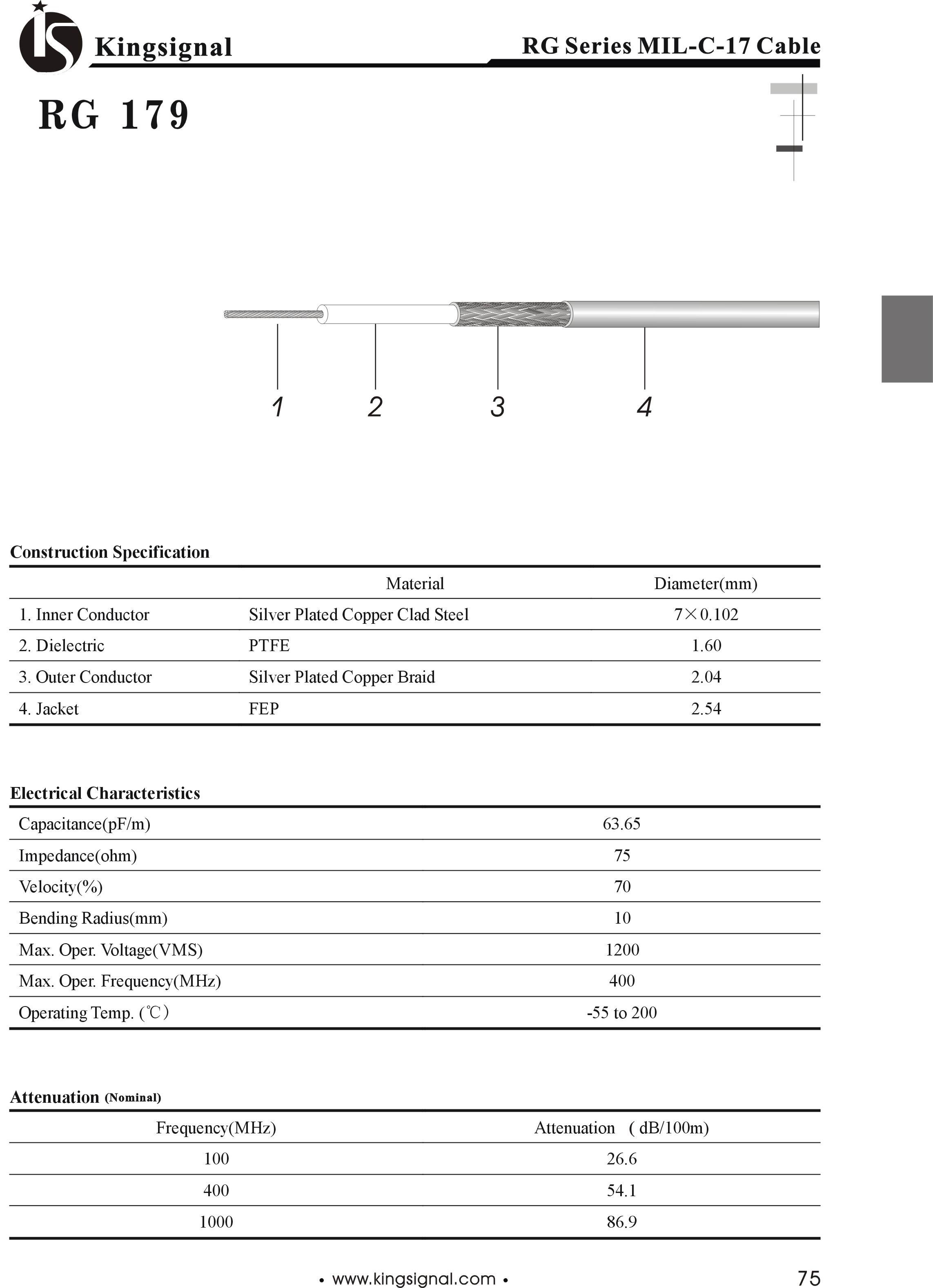 اشتراک گذاری در شبکه های اجتماعی کابل RG179 مشخصات فنی کابل RG179 نوع: کابل کواکسیال دسته: کابل RG هادی داخلی: فولاد با روکش مس نقرهاندود (Silver Plated Copper Clad Steel)، 7 رشته با قطر 0.102 میلیمتر دیالکتریک: PTFE، قطر 1.60 میلیمتر هادی خارجی: بافت مس نقرهاندود (Silver Plated Copper Braid)، قطر 2.04 میلیمتر روکش بیرونی: FEP، قطر 2.54 میلیمتر ظرفیت خازنی: 63.65 pF/m امپدانس: 75 اهم سرعت انتشار: 70 درصد شعاع خمش: 10 میلیمتر حداکثر ولتاژ کاری: 1200 ولت RMS حداکثر فرکانس کاری: 400 مگاهرتز محدوده دمای کاری: منفی 55 تا مثبت 200 درجه سانتیگراد تضعیف در 100 مگاهرتز: 26.6 dB/100m تضعیف در 400 مگاهرتز: 54.1 dB/100m تضعیف در 1000 مگاهرتز: 86.9 dB/100m کد محصول: 239 برای اطلاع از قیمت تماس حاصل فرمائید موجودی ۱,۰۰۰ محصولات مرتبط فایل های مرتبط نظرات کاربران محصولات مرتبط کابل RG405 12345 کابل RG402 12345 کابل RG223 12345 کابل RG214 12345 کابل RG213 12345 کابل RG400 12345 کابل RG142 12345 کابل RG316 12345 کابل RG180 12345 کابل RG178 12345 کابل RG174 12345 کابل RG402 روکش دار 12345 تعداد نمایش: 12 24 60 120 همه موارد صفحه ۱ از ۲ شماره صفحه شرح اندازه نوع فایل دانلود شرح دیتاشیت کابل RG179 اندازه 294.19KB نوع فایل دانلود نام را وارد کنید ایمیل را وارد کنید ایمیل صحیح نیست ایمیل نمایش داده شود. تعداد کاراکتر باقیمانده: 400 نظر خود را وارد کنید بازخوانی بازخوانی پس از انتشار این نظر، به من اطلاع داده شود. ارسال AddToCartModal ×