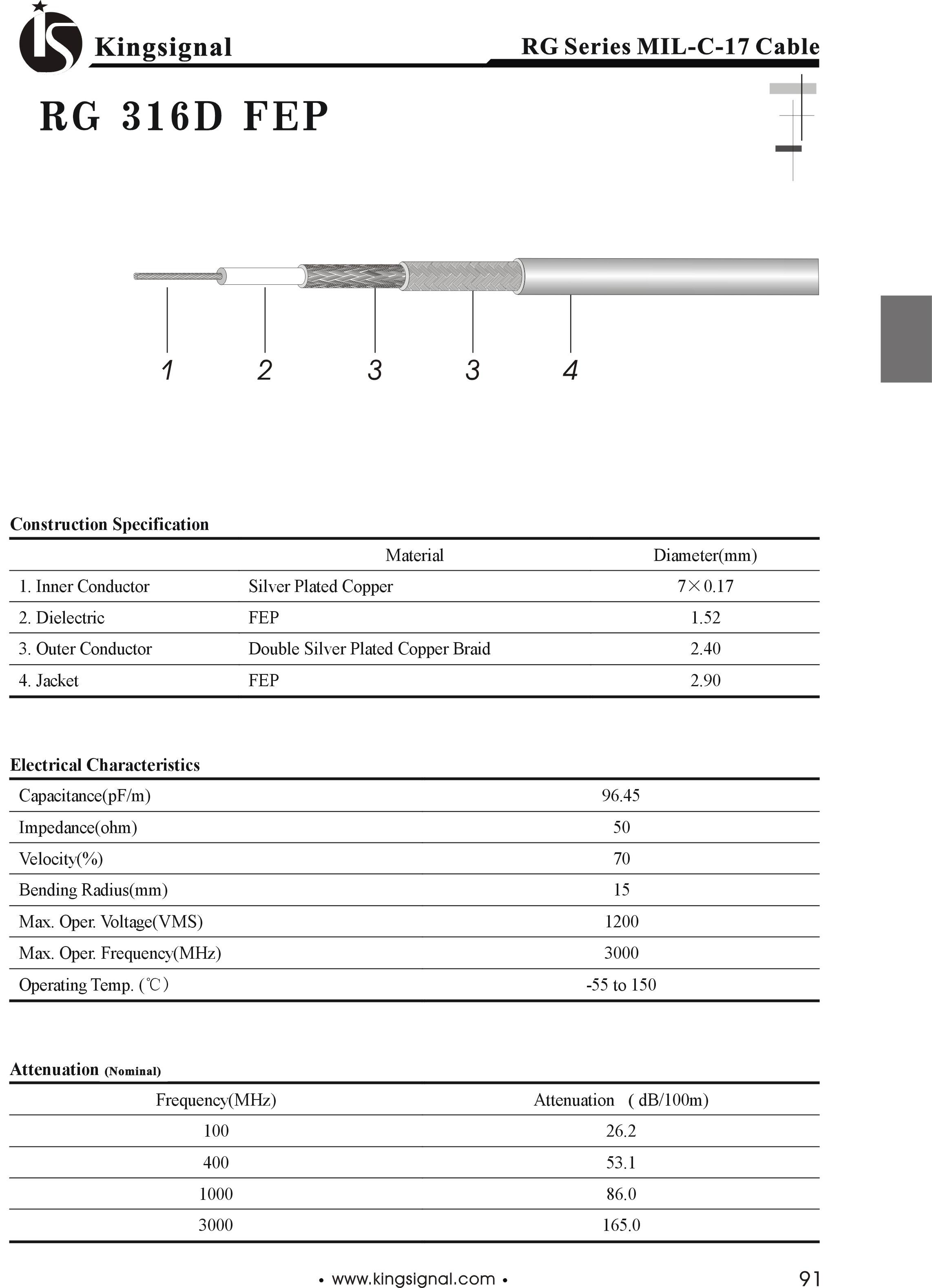 اشتراک گذاری در شبکه های اجتماعی کابل RG316D FEP مشخصات فنی کابل RG316D FEP نوع: کابل کواکسیال دسته: کابل RG هادی داخلی: مس نقرهاندود (Silver Plated Copper)، قطر 7×0.17 میلیمتر دیالکتریک: FEP، قطر 1.52 میلیمتر هادی خارجی: بافت دوتایی مس نقرهاندود (Double Silver Plated Copper Braid)، قطر 2.40 میلیمتر روکش بیرونی: FEP، قطر 2.90 میلیمتر ظرفیت خازنی: 96.45 pF/m امپدانس: 50 اهم سرعت انتشار: 70 درصد شعاع خمش: 15 میلیمتر حداکثر ولتاژ کاری: 1200 ولت RMS حداکثر فرکانس کاری: 3000 مگاهرتز محدوده دمای کاری: منفی 55 تا مثبت 150 درجه سانتیگراد تضعیف در 100 مگاهرتز: 26.2 dB/100m تضعیف در 400 مگاهرتز: 53.1 dB/100m تضعیف در 1000 مگاهرتز: 86.0 dB/100m تضعیف در 3000 مگاهرتز: 165.0 dB/100m کد محصول: 247 برای اطلاع از قیمت تماس حاصل فرمائید موجودی ۱,۰۰۰ محصولات مرتبط فایل های مرتبط نظرات کاربران محصولات مرتبط کابل RG405 12345 کابل RG402 12345 کابل RG223 12345 کابل RG214 12345 کابل RG213 12345 کابل RG400 12345 کابل RG142 12345 کابل RG316 12345 کابل RG180 12345 کابل RG178 12345 کابل RG174 12345 کابل RG402 روکش دار 12345 تعداد نمایش: 12 24 60 120 همه موارد صفحه ۱ از ۳ شماره صفحه شرح اندازه نوع فایل دانلود شرح دیتاشیت کابل RG316D FEP اندازه 313.13KB نوع فایل دانلود نام را وارد کنید ایمیل را وارد کنید ایمیل صحیح نیست ایمیل نمایش داده شود. تعداد کاراکتر باقیمانده: 400 نظر خود را وارد کنید بازخوانی بازخوانی پس از انتشار این نظر، به من اطلاع داده شود. ارسال AddToCartModal ×