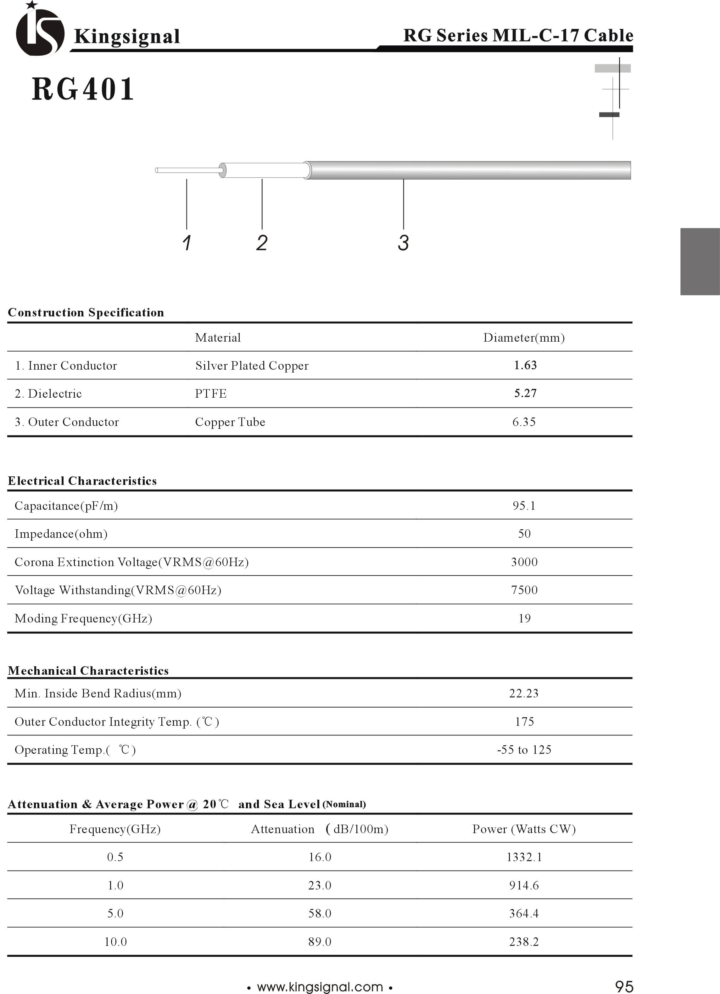 اشتراک گذاری در شبکه های اجتماعی کابل RG401 مشخصات فنی کابل RG401 نوع: کابل کواکسیال دسته: کابل RG هادی داخلی: مس نقرهاندود (Silver Plated Copper)، قطر 1.63 میلیمتر دیالکتریک: PTFE، قطر 5.27 میلیمتر هادی خارجی: لوله مسی (Copper Tube)، قطر 6.35 میلیمتر ظرفیت خازنی: 95.1 pF/m امپدانس: 50 اهم ولتاژ خاموشی کرونا (VRMS@60Hz): 3000 ولتاژ تحملی (VRMS@60Hz): 7500 فرکانس مودینگ: 19 گیگاهرتز حداقل شعاع خمش داخلی: 22.23 میلیمتر دمای یکپارچگی هادی خارجی: 175 درجه سانتیگراد محدوده دمای کاری: منفی 55 تا مثبت 125 درجه سانتیگراد تضعیف در 0.5 گیگاهرتز: 16.0 dB/100m – توان 1332.1 وات تضعیف در 1.0 گیگاهرتز: 23.0 dB/100m – توان 914.6 وات تضعیف در 5.0 گیگاهرتز: 58.0 dB/100m – توان 364.4 وات تضعیف در 10.0 گیگاهرتز: 89.0 dB/100m – توان 238.2 وات کد محصول: 251 برای اطلاع از قیمت تماس حاصل فرمائید موجودی ۱,۰۰۰ محصولات مرتبط فایل های مرتبط نظرات کاربران محصولات مرتبط کابل RG405 12345 کابل RG402 12345 کابل RG223 12345 کابل RG214 12345 کابل RG213 12345 کابل RG400 12345 کابل RG142 12345 کابل RG316 12345 کابل RG180 12345 کابل RG178 12345 کابل RG174 12345 کابل RG402 روکش دار 12345 تعداد نمایش: 12 24 60 120 همه موارد صفحه ۱ از ۴ شماره صفحه شرح اندازه نوع فایل دانلود شرح دیتاشیت کابل RG401 اندازه 322.76KB نوع فایل دانلود نام را وارد کنید ایمیل را وارد کنید ایمیل صحیح نیست ایمیل نمایش داده شود. تعداد کاراکتر باقیمانده: 400 نظر خود را وارد کنید بازخوانی بازخوانی پس از انتشار این نظر، به من اطلاع داده شود. ارسال AddToCartModal ×